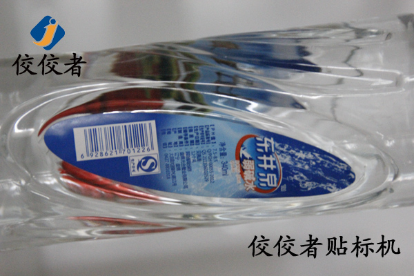 客戶所用的標簽為不干膠標簽,尺寸也是一種,需要貼正、背雙標,相對來說比較簡單,據判斷,上圖中的樣品完全可以用我們成熟的標準圓瓶貼標機進行貼標即可。能貼弱堿水瓶的機器有我公司標準機中的半自動圓瓶貼標機和全自動定位式立式圓瓶貼標機。