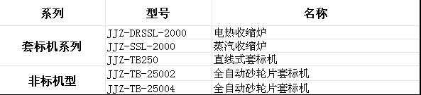 于2013年3月15號公司成功研發套標機5臺.并正式投入市場進行推廣銷售.下圖是公司對應套標機的型號與產品名稱.