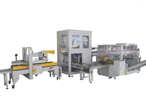 裝箱機(jī)是一種將無(wú)包裝的產(chǎn)品或者小包裝的產(chǎn)品半自動(dòng)或者自動(dòng)裝入運(yùn)輸包裝的一種設(shè)備,其工作原理是將產(chǎn)品按一定排列方式和定量裝入箱中(瓦楞紙箱、塑料箱、托盤),并把箱的開口部分閉合或封牢。按照裝箱機(jī)的要求,它應(yīng)具有紙箱成形(或打開紙箱)、計(jì)量、裝箱的功能,有些還配有封口或者捆扎功能。