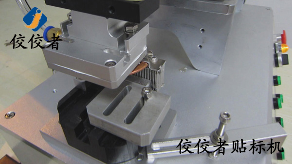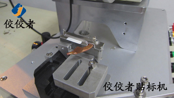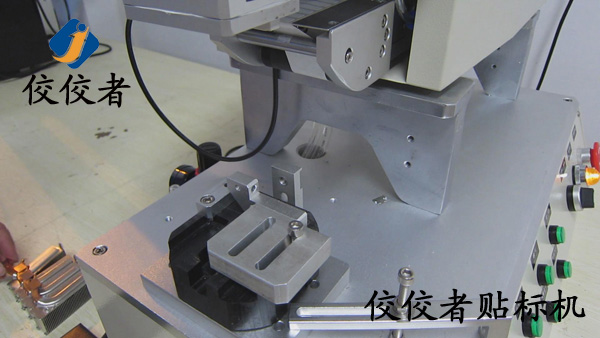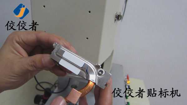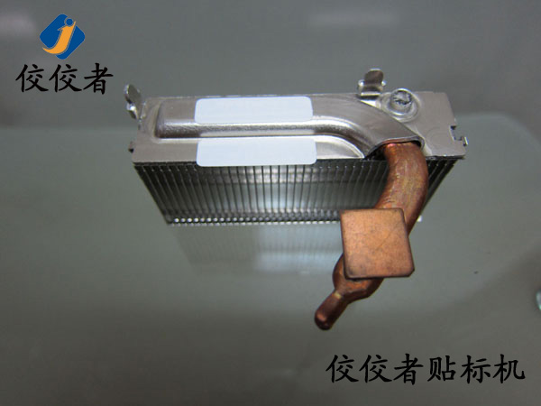 因為這款產品需要貼兩張標簽。那么我們首先在散熱器上面貼上一張標簽。當我們貼好一張標簽之后,再貼另外一張標簽的時候,我們需要再一次調整模具的位置來實現另外一張標簽的貼標。所以我們建議客戶在同一個產品上面貼兩張標簽的時候,盡力做到一張一張的批量貼標。這樣可以有效增加生產率。